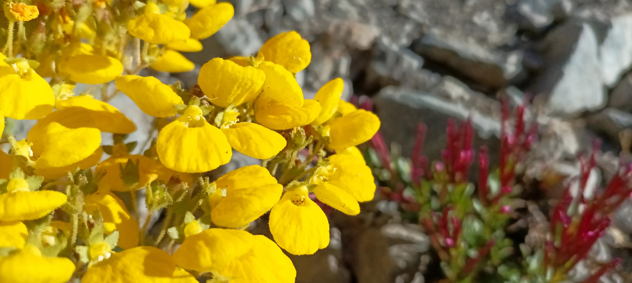 Calceolaria arachnoidea ssp. arachnoidea con sus “pelos” blanquecinos que reducen la radiación. Joao de la Cruz.